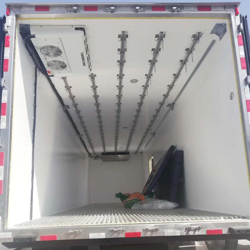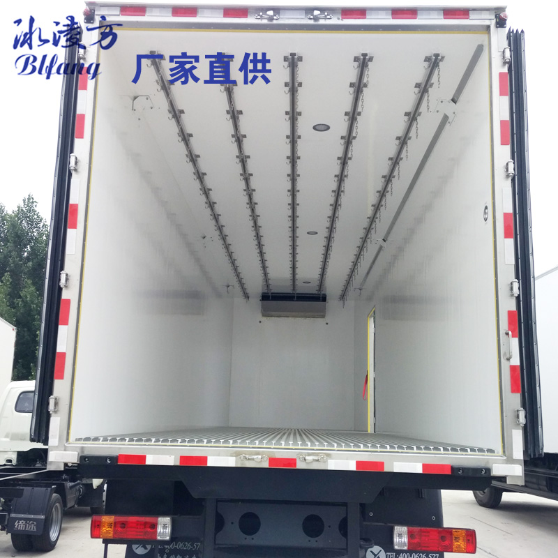 冰凌方冷藏車采用全封閉聚氨酯板塊粘接玻璃鋼結構,廂體比同類產品輕,能有效的降低運輸成本。廂體采用高分子聚酯材料熱壓成型,采用全封閉結構。一體化的內部加強筋,極大的增加了廂板強度,高強度、高密封性膠合劑,形成一個整體,耐腐蝕性好。采用“三明治”壓法,保證廂板內無空氣間隙,廂體無金屬冷橋,導熱率低。