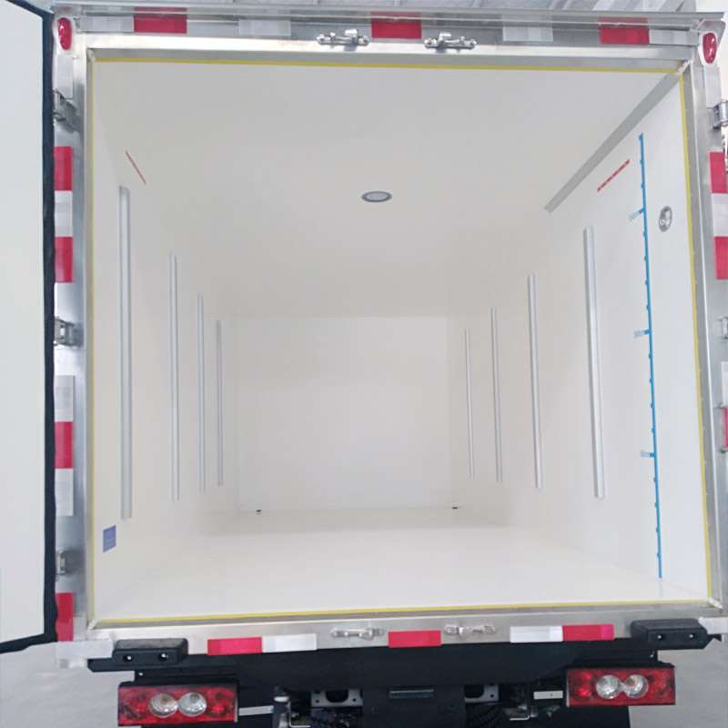 冰凌方冷藏車采用全封閉聚氨酯板塊粘接玻璃鋼結構,廂體比同類產品輕,能有效的降低運輸成本。廂體采用高分子聚酯材料熱壓成型,采用全封閉結構。一體化的內部加強筋,極大的增加了廂板強度,高強度、高密封性膠合劑,形成一個整體,耐腐蝕性好。采用“三明治”壓法,保證廂板內無空氣間隙,廂體無金屬冷橋,導熱率低。
