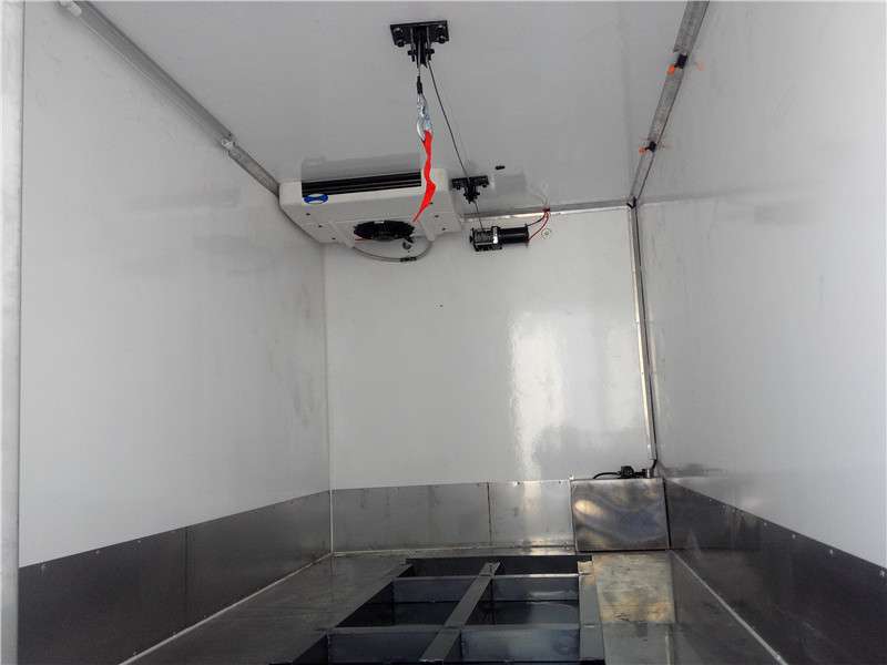 2.廂體工藝:廂體采用粘接式結構,接觸面積大,力分布均勻,密封性好,整體結構強度高。箱體具有保溫性能好、環保節能、耐腐蝕、質量輕、壽命長、抗老化等特點。并且箱體外觀光潔度高,適合做車體廣告。采用國際新技術、新工藝制造,廂體隔熱、保溫性強、平整度高、耐沖擊性好,對大氣、水和酸、堿、鹽等介質具有良好的耐腐蝕性和抗老化性。 冷藏機組具有結構簡單、操作方便運行可靠、能耗低制冷量大,噪聲小安裝維護方便等特點。