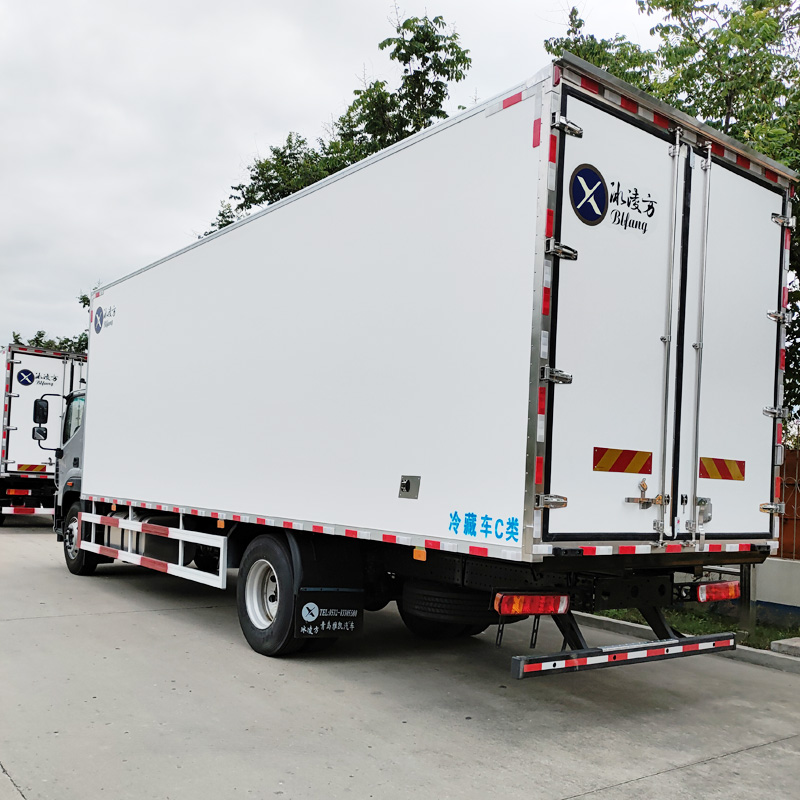 冰凌方冷藏車采用全封閉聚氨酯板塊粘接玻璃鋼結構,廂體比同類產品輕,能有效的降低運輸成本。廂體采用高分子聚酯材料熱壓成型,采用全封閉結構。一體化的內部加強筋,極大的增加了廂板強度,高強度、高密封性膠合劑,形成一個整體,耐腐蝕性好。采用“三明治”壓法,保證廂板內無空氣間隙,廂體無金屬冷橋,導熱率低。